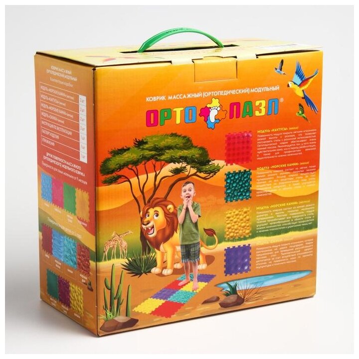 ОртоПазл Модульный массажный коврик ОРТО пазл «Сафари», 8 модулей, 4 вида