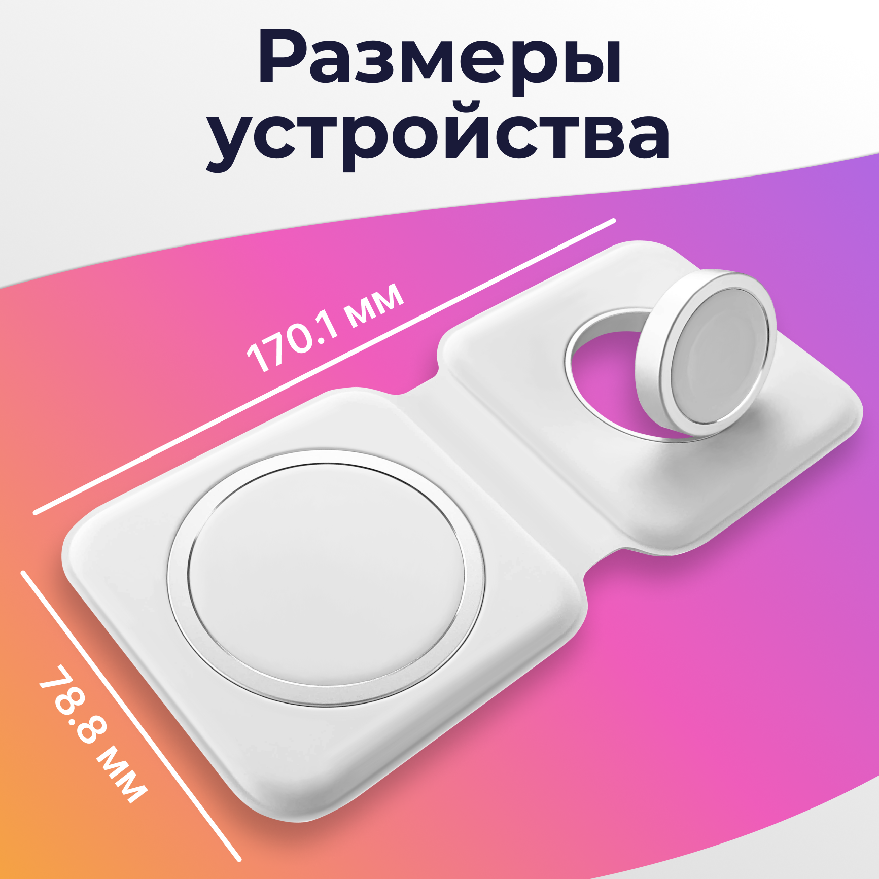 Двойное беспроводное зарядное устройство 2 в 1 / Док станция для iPhone, Apple Watch 1-6, SE Series с поддержкой стандарта QI 15W (Белый) интересное: