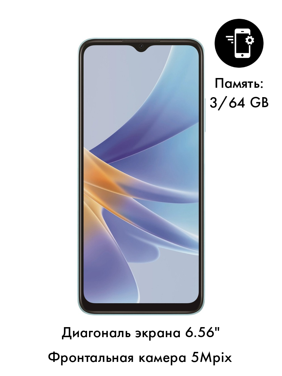 Смартфон Oppo A17k 3Гб 64Гб Синий 6.56", IPS, 1612*720, 4*2.3+4*1.8ГГц, 8Мп, 5Мп, 4G, 5000мАч, And 12