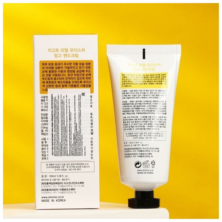 Jigott Крем для рук увлажняющий с экстрактом манго 100 мл для сухой кожи и огрубевшей кожи Real Moisture Mango Hand Cream Корея