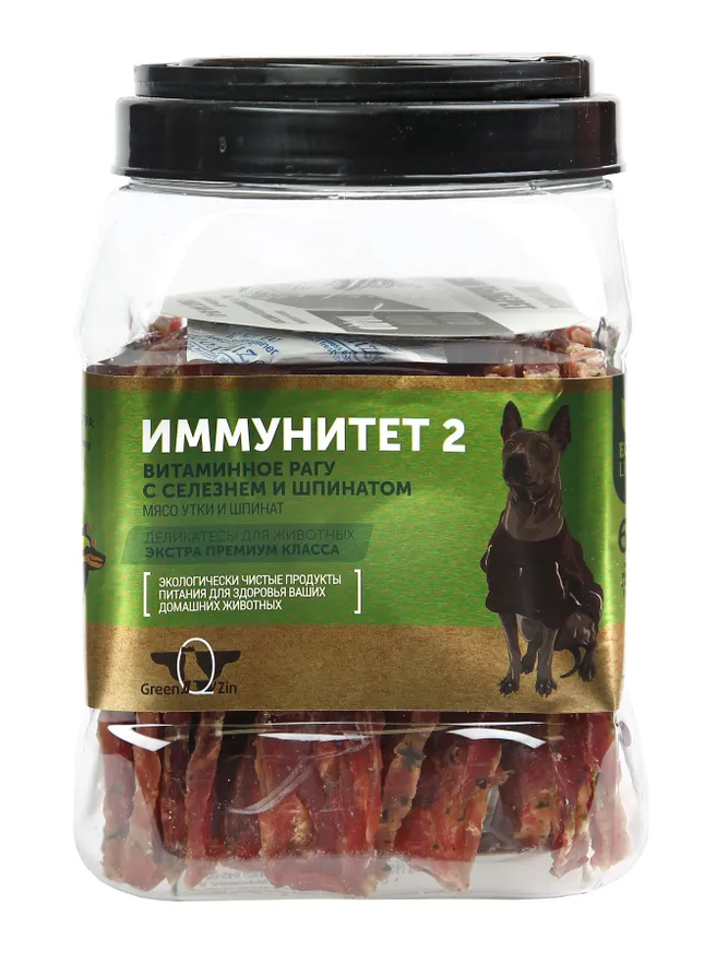 Green Qzin лакомство для собак Иммунитет 2, сушеное мясо гусарки и шпинат