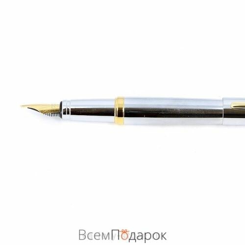 Перьевая ручка FranklinCovey Lexington. Цвет - хромовый с золотистой отделкой.