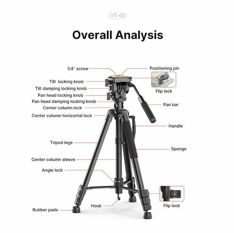 Профессиональный видео фото штатив Ulanzi U-SELECT VT-02, штатив для камеры