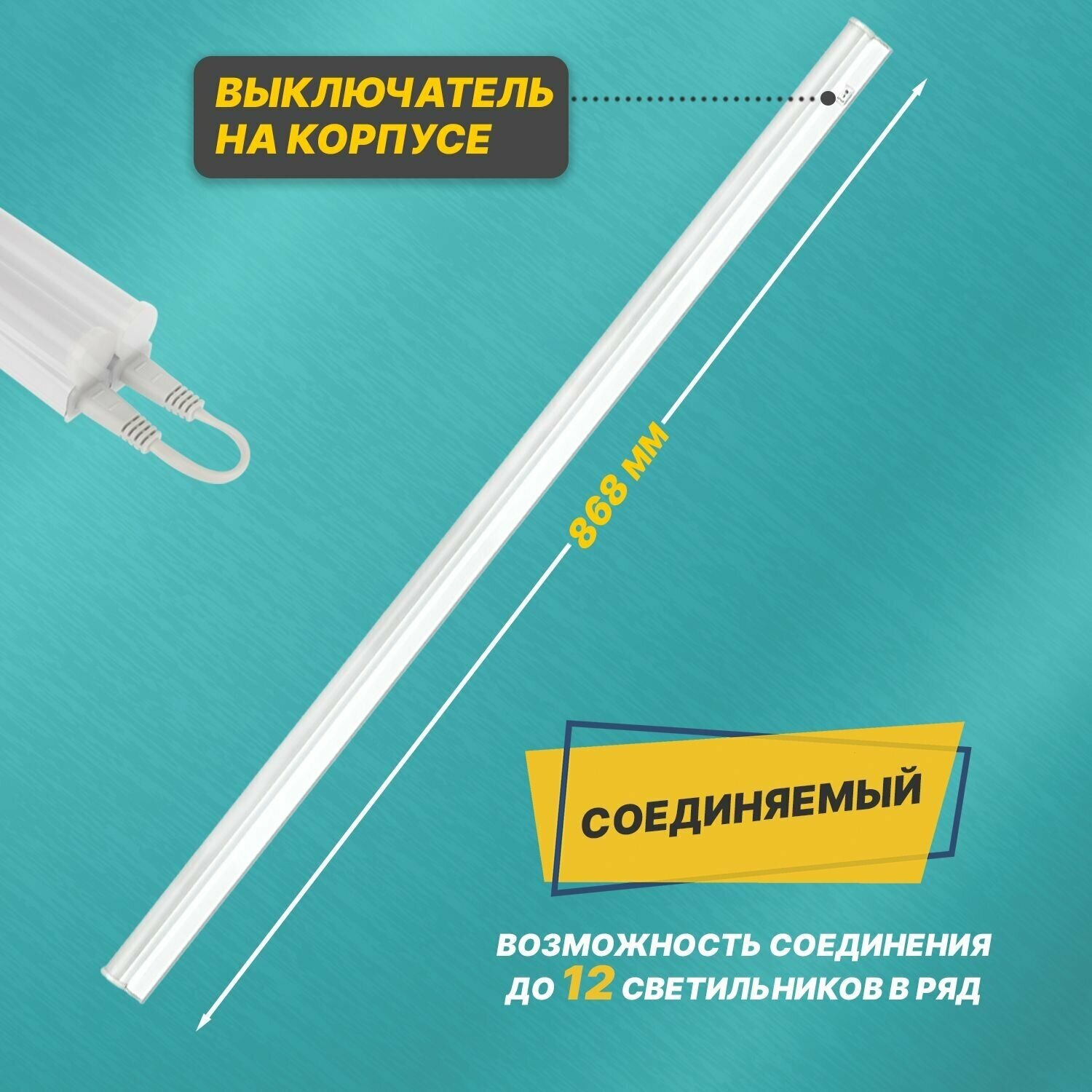 Линейный светильник REXANT T5 с выключателем и соединителем, длина 86.8 см, 12 Вт, 960 Лм, 6500 K, IP20