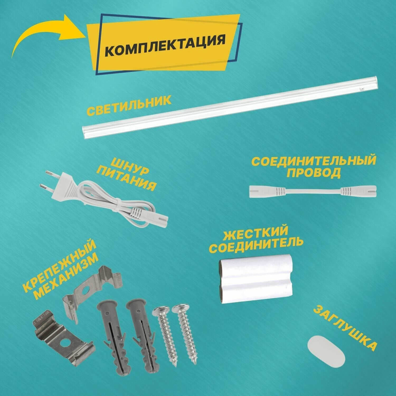 Светильник светодиодный REXANT линейный T5-01 12 Вт 960 Лм 6500 K IP20 869 мм с выключателем и соединителем, сетевой шнур с вилкой