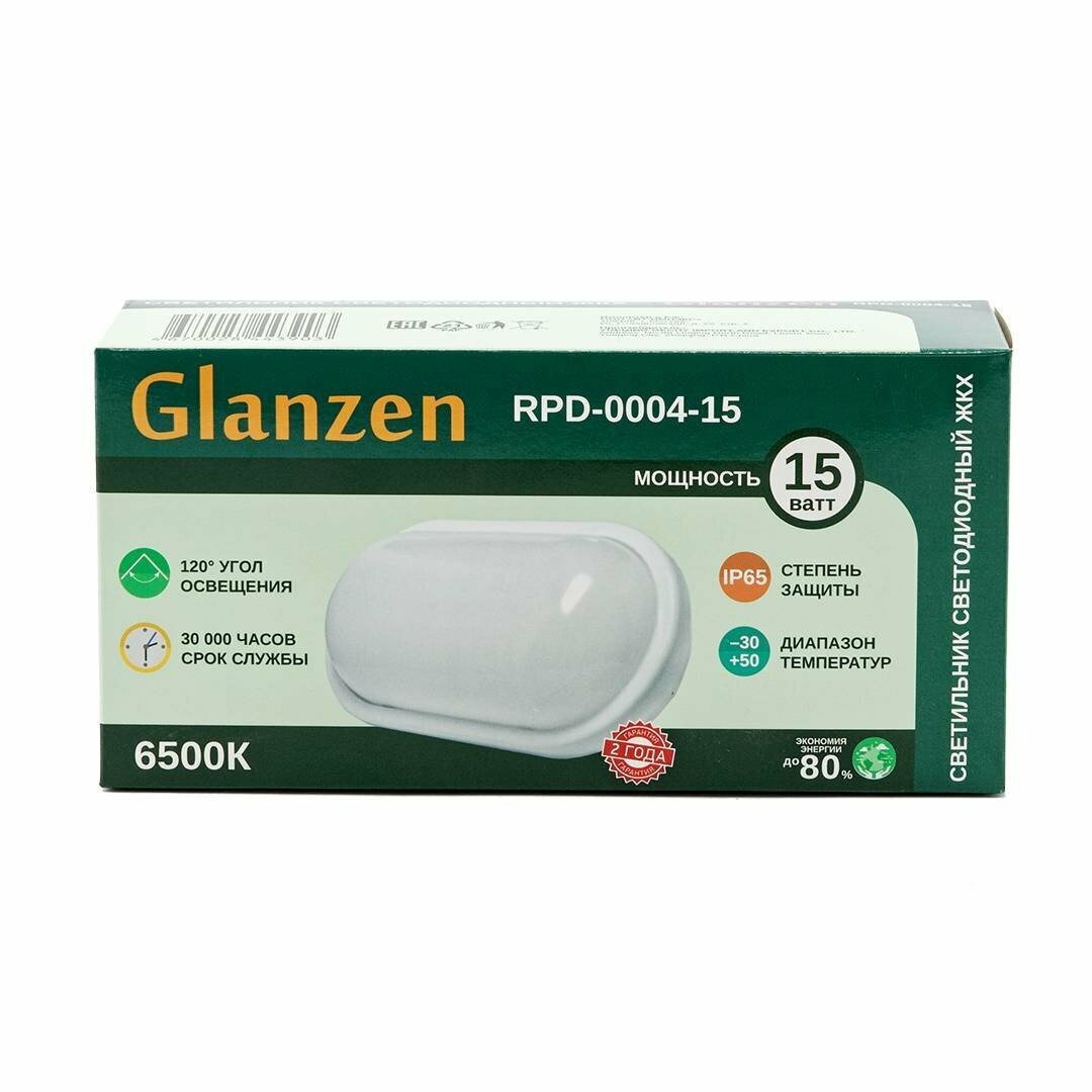 Купить Cветодиодный светильник ЖКХ GLANZEN 15Вт RPD-0004-15 овал 6500K IP65