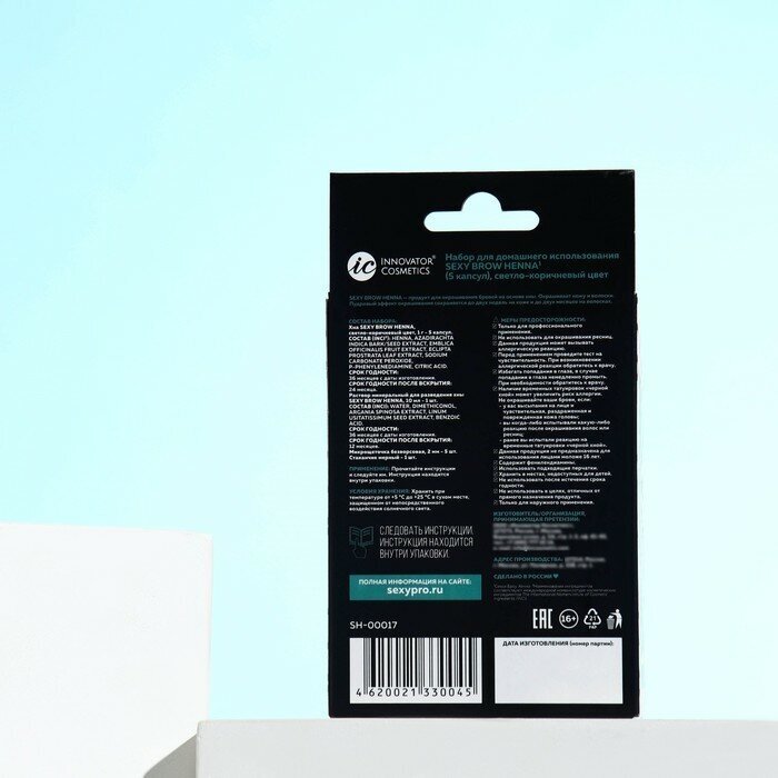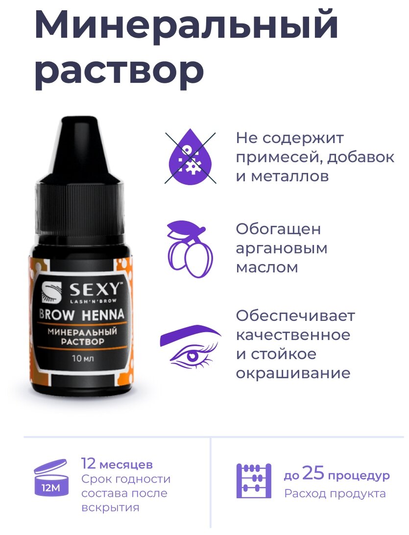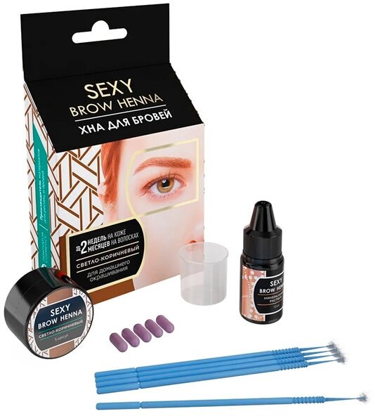 Купить SEXY BROW HENNA Набор Хна для бровей в капсулах, 5 штук + Минеральный раствор, 10 мл для домашнего окрашивания светло-коричневый