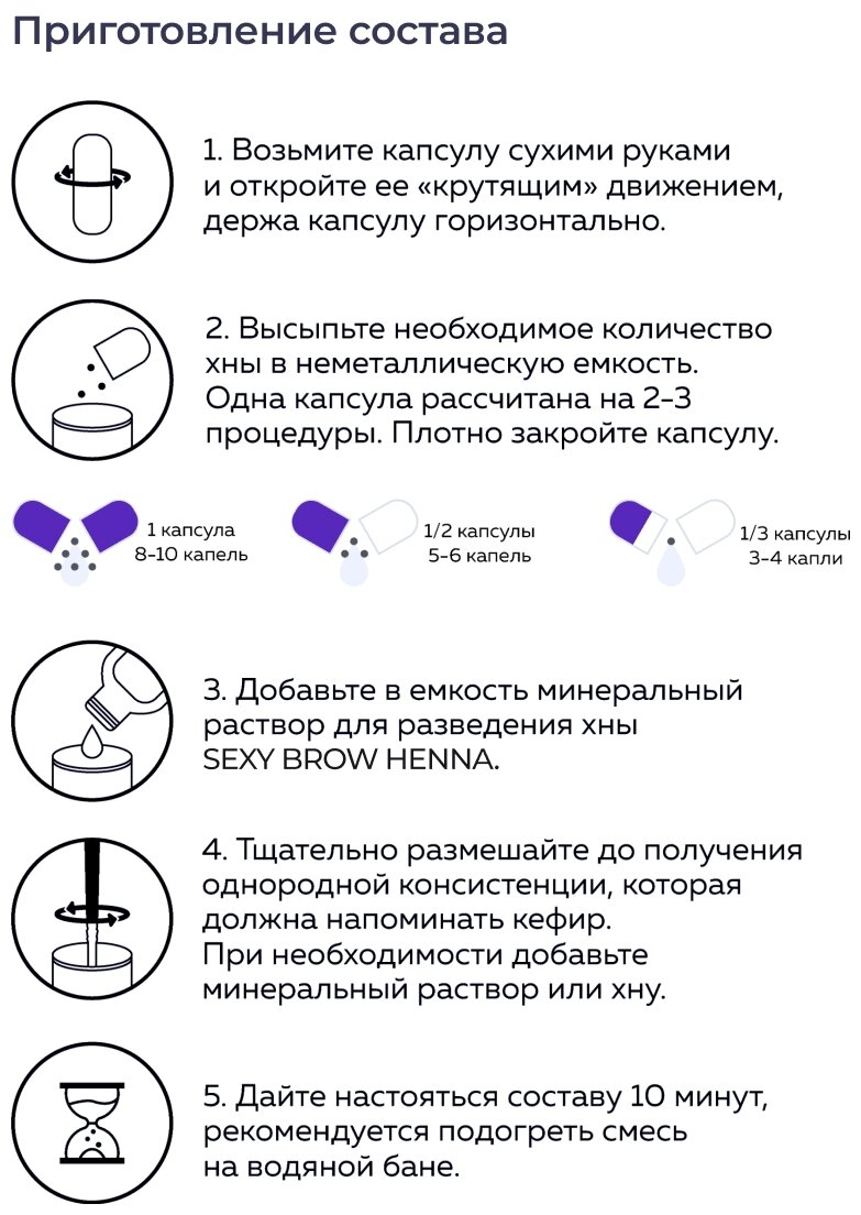 СохранитьSEXY BROW HENNA Набор Хна для бровей в капсулах, 5 штук + Минеральный раствор, 10 мл для домашнего окрашивания светло-коричневый интересное: