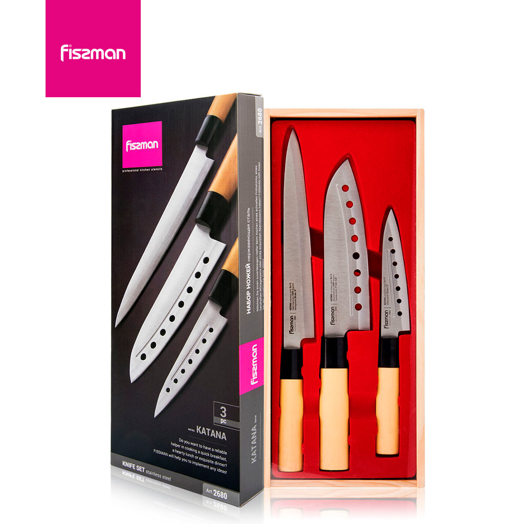 Купить 2680 FISSMAN Набор ножей KATANA 3 пр. (гастрономический 20 см/ сантоку 17 см/ универсальный 13 см, 3Cr13 сталь)