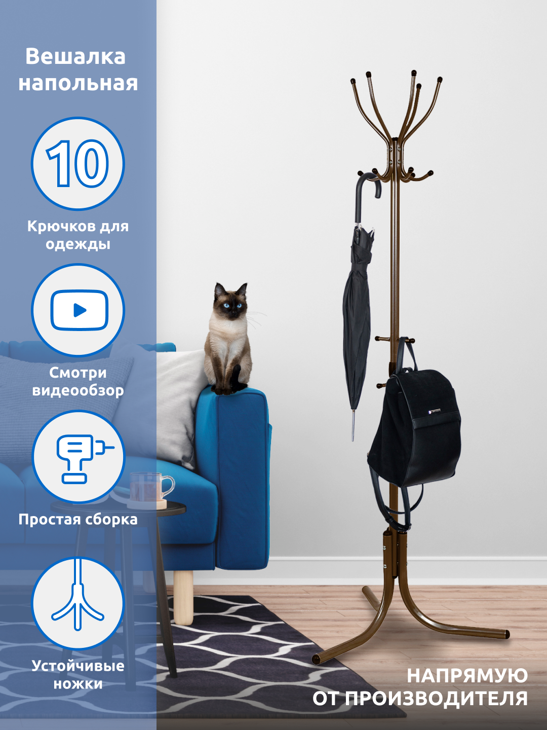 Вешалка напольная Nika Комфорт, 5 крючков, 60 x 60 x 180 см, медный