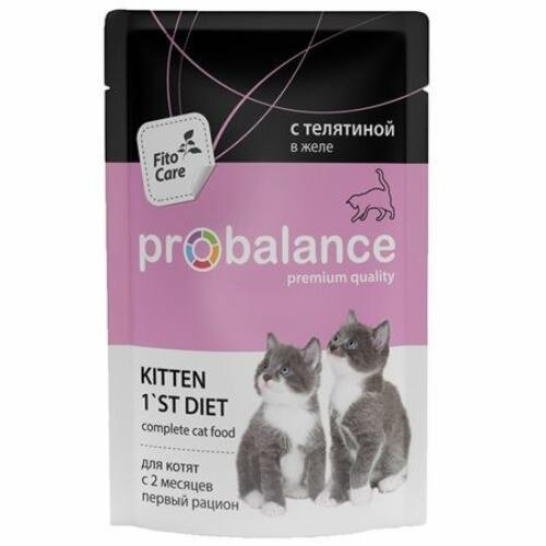 Корм влажный ProBalance Kitten 1st Diet, для котят с телятиной, кусочки в желе, 85г х 28шт