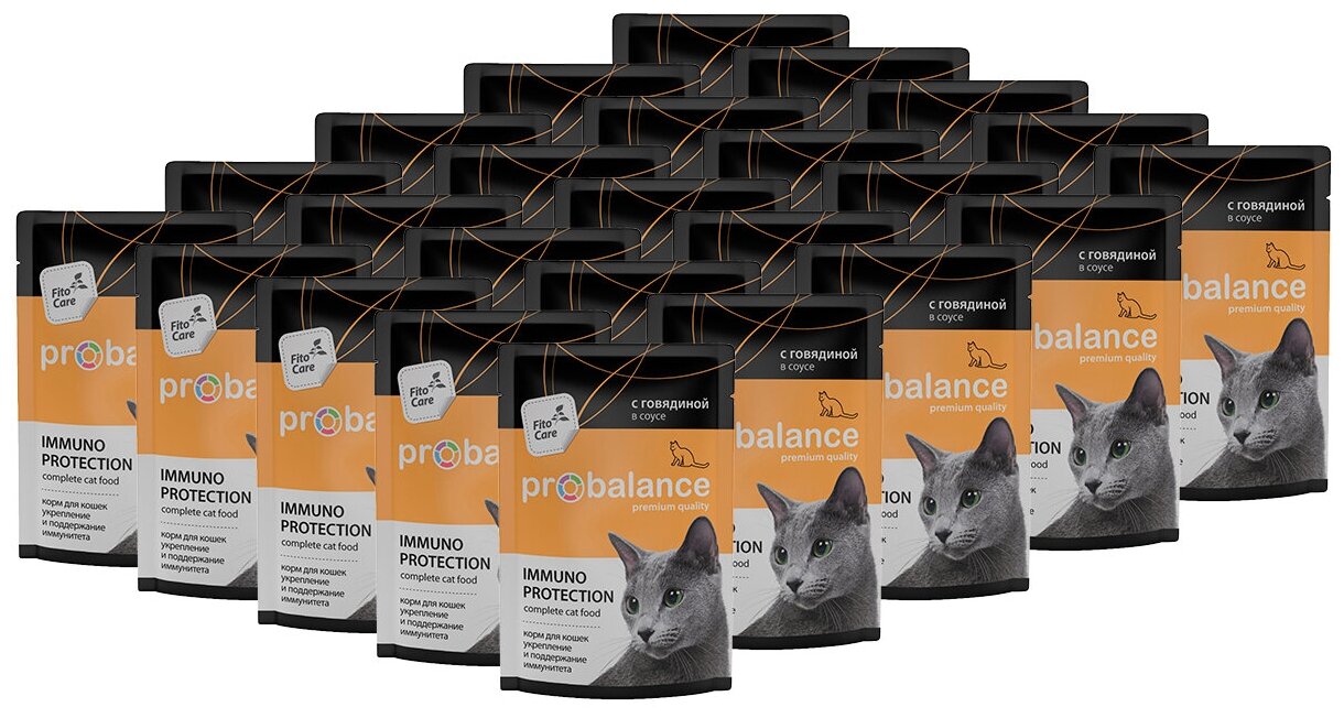 Влажный корм ProBalance Immuno Protection для кошек с говядиной в соусе, пауч, 85гр x 25шт
