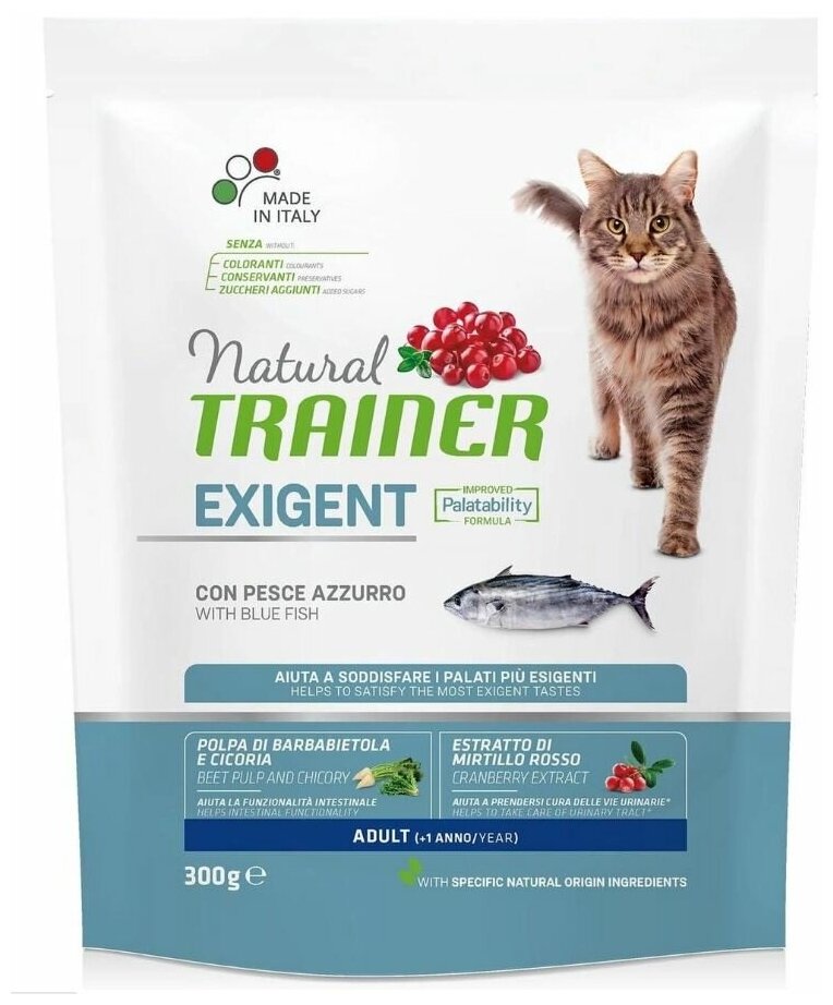 TRAINER NATURAL EXIGENT CAT WITH BLUE FISH для привередливых взрослых кошек с пеламидой (1,5 кг)