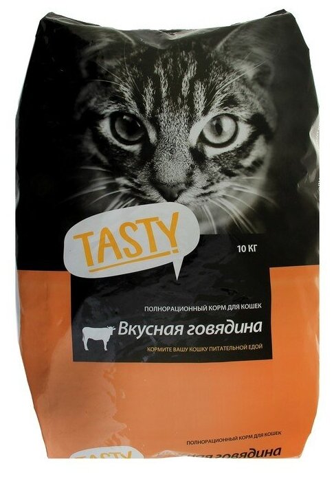Корм сухой Tasty Petfood Tasty для взрослых кошек, с говядиной, 10 кг