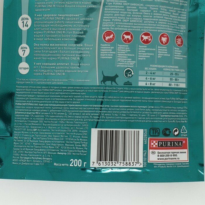 Сухой корм PURINA ONE для взрослых кошек для чувствительного пищеварения с индейкой 200 г