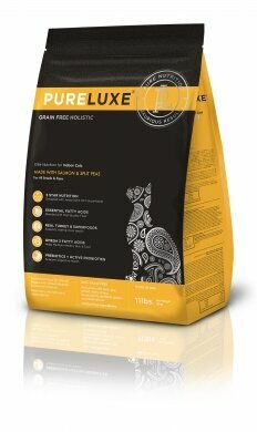 PURELUXE элитное питание беззерновой для взрослых кошек живущих дома с лососем и горошком (5 кг)