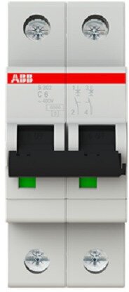 S202 C6 Автоматический выключатель 2-полюсный, 6А, 6кА (хар-ка C) ABB, 2CDS252001R0064