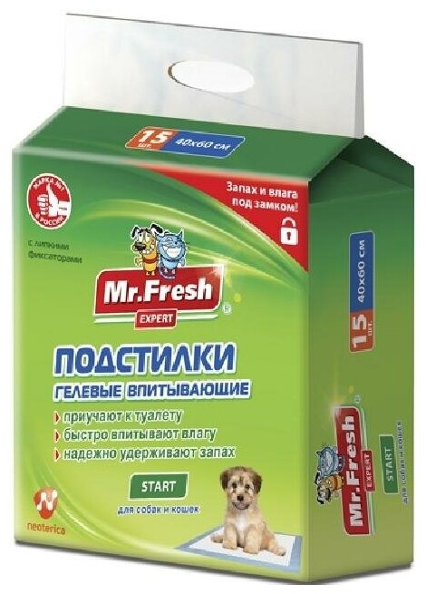 Mr.Fresh Подстилка-пеленка для кошек и собак Expert Start впитывающая 40 см*60 см 15 шт. F504 0,3 кг 55864