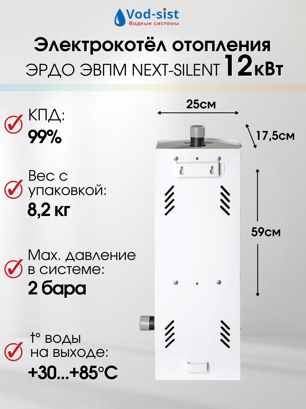Купить Электрический котел эрдо ЭВПМ NEXT SILENT, 12 кВт, одноконтурный