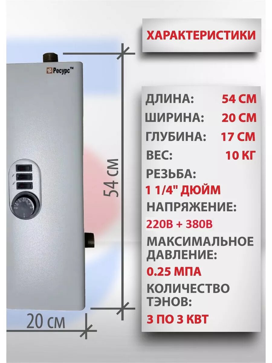 Ниже Вы можете прочитать отзывы на Котёл электрический Ресурс ЭВПМ-9 кВт, ознакомится с подробными характеристиками, посмотреть интересные обзоры и фотографии на Котёл электрический Ресурс ЭВПМ-9 кВт.