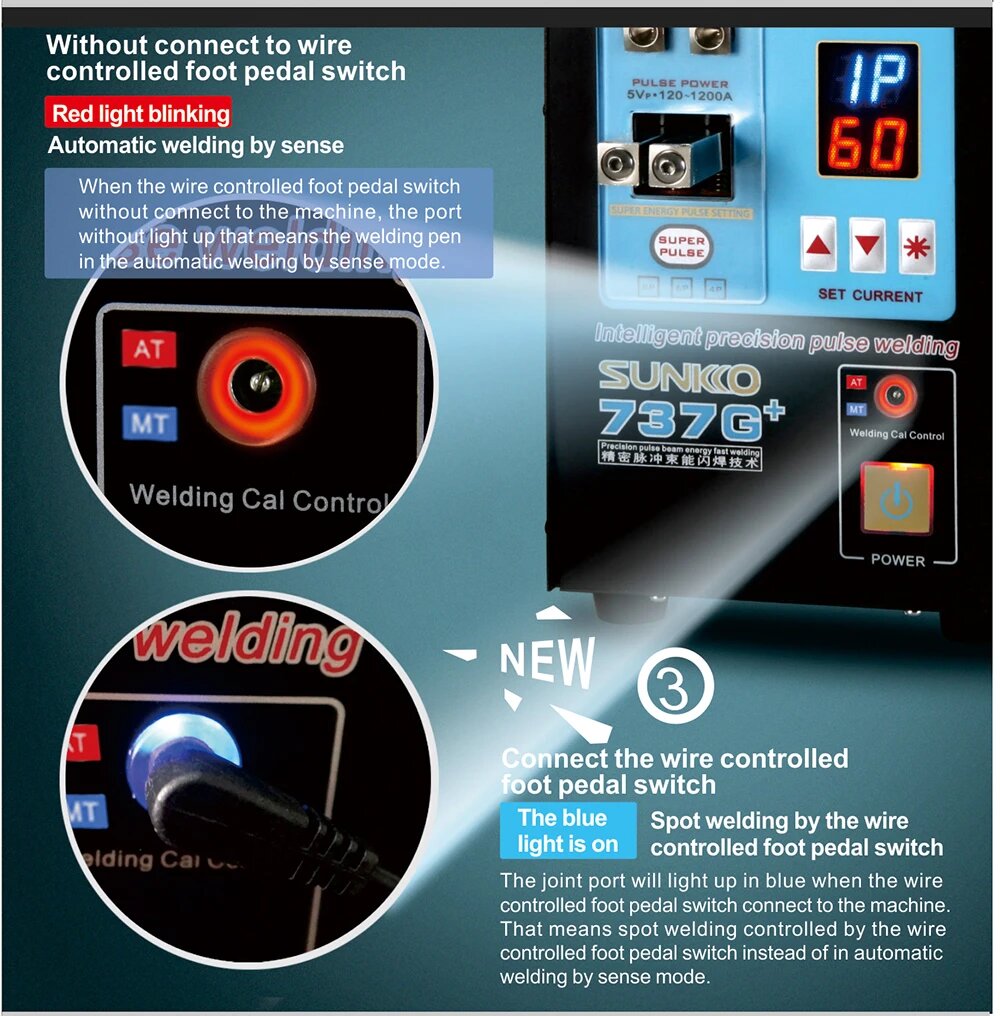 Аппарат точечной сварки аккумуляторов 4,3 кВт с ручкой 70BN SUNKKO 737G+ интересное: