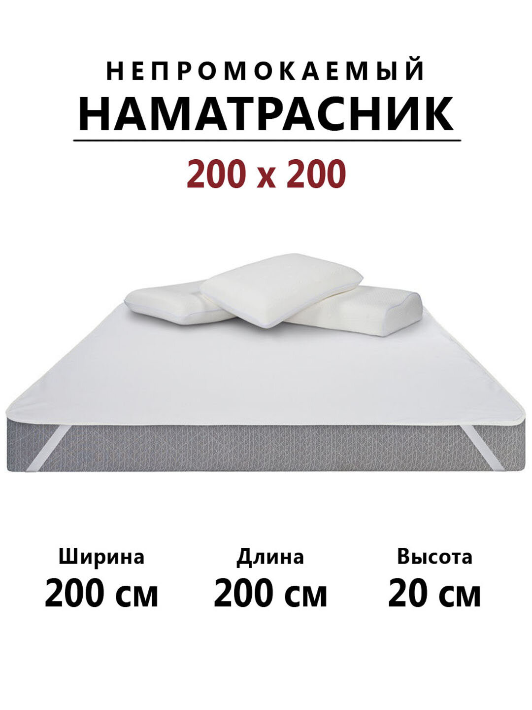 Наматрасник Защита и Комфорт с резинкой по углам 200х200см, мембрана хл80%, пэ20%