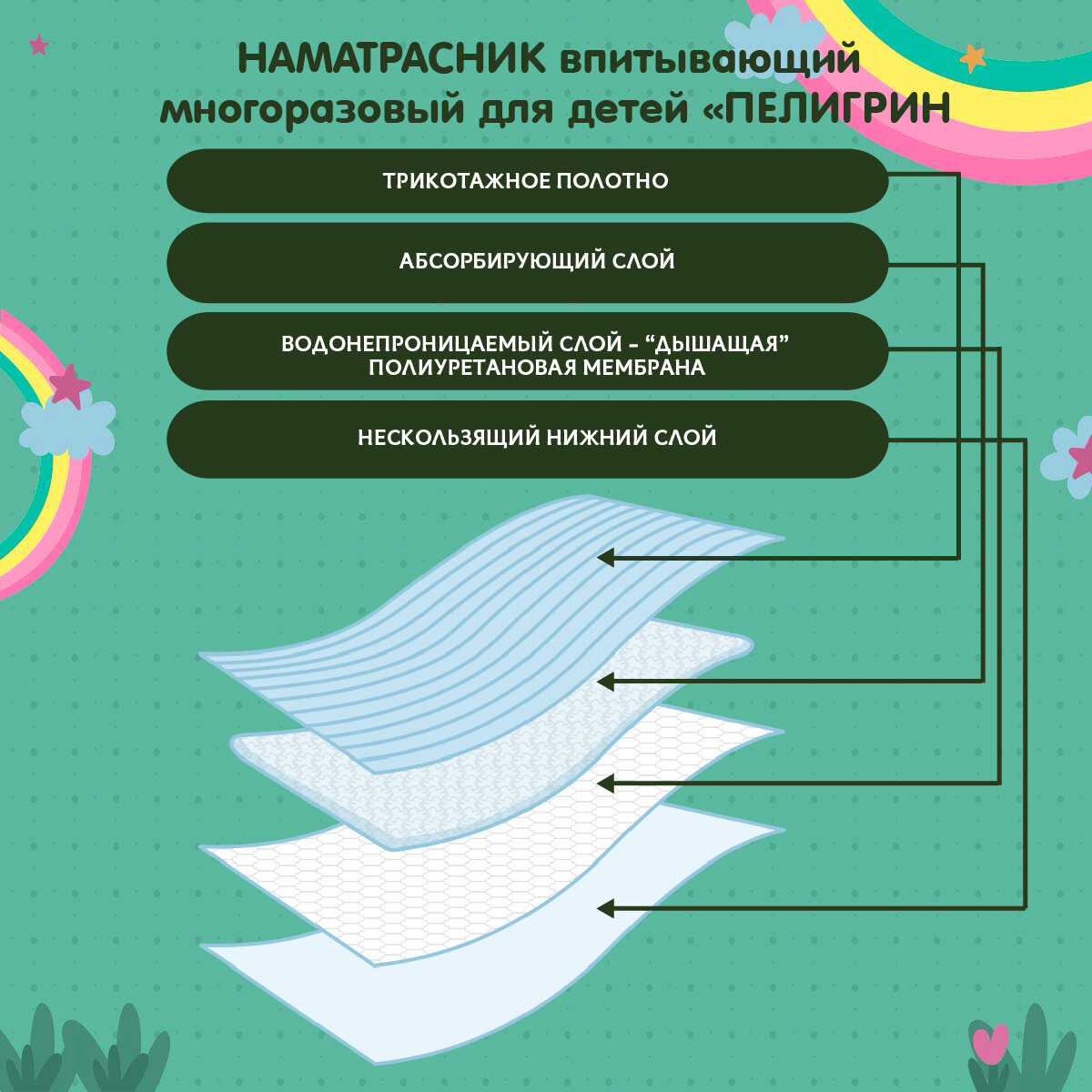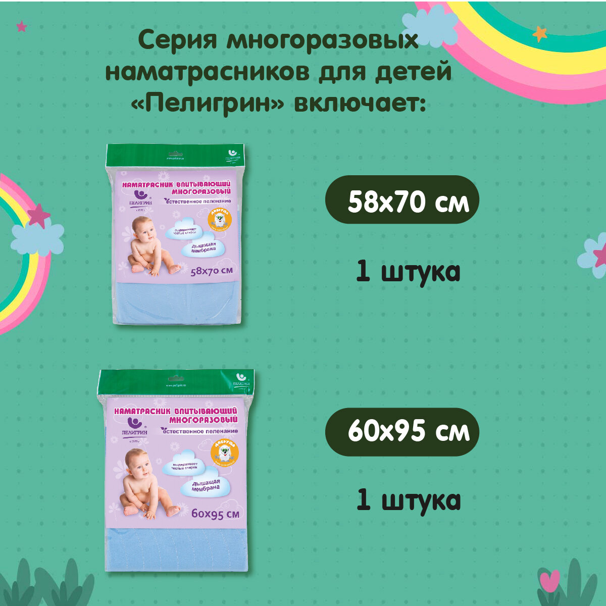 Наматрасник защитный для детской кровати Пелигрин, впитывающий, 60х95см интересное: