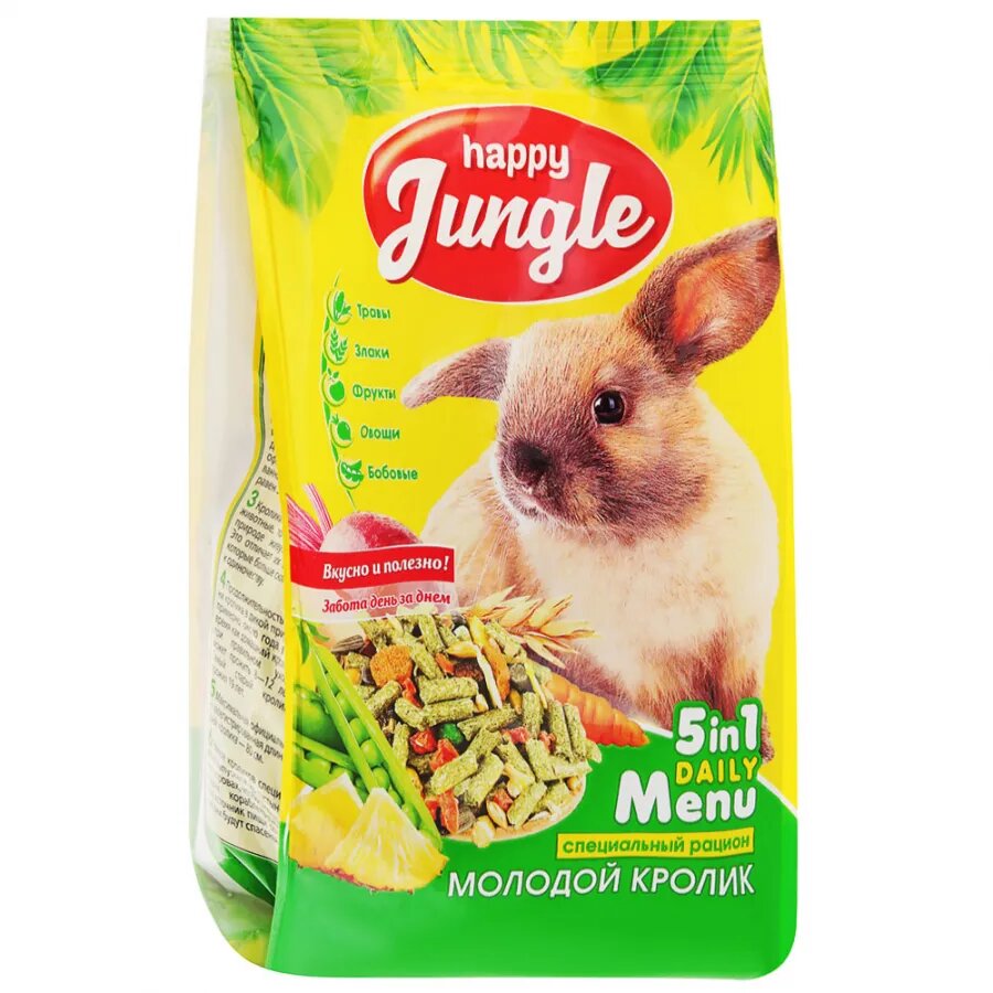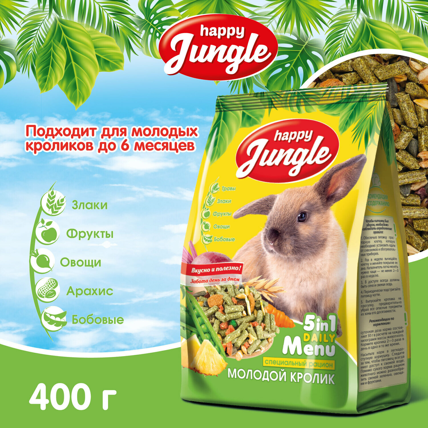 Сухой корм для молодых кроликов до 6 месяцев Happy Jungle 5in1 для грызунов daily menu фрукты 400 г