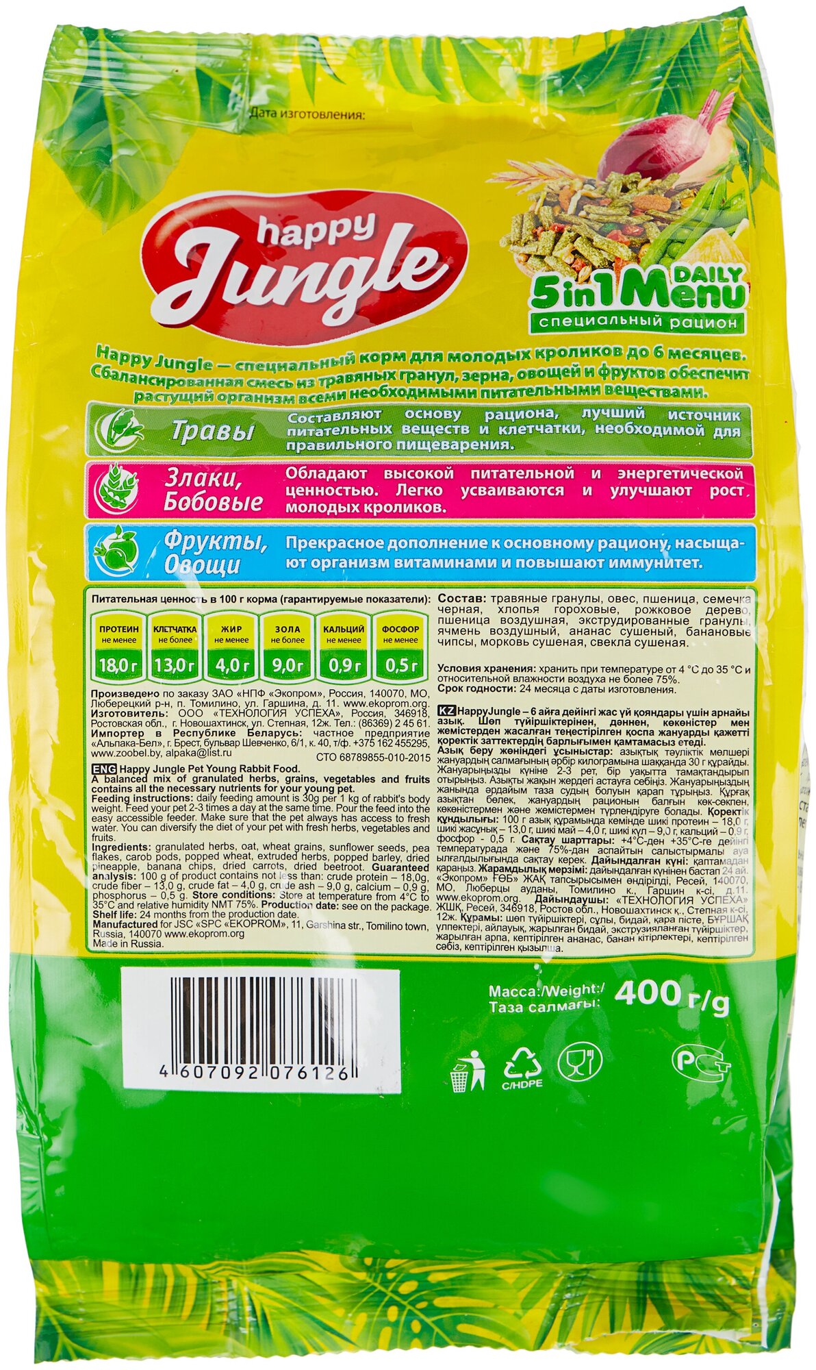 Happy Jungle (Экопром) корм для молодых кроликов 5в1 Daily Menu, 400 г