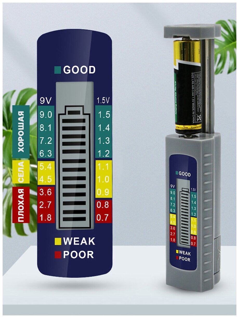 | Минусы: | Не тестирует батарейки напряжением 3 вольта, например CR2032. |