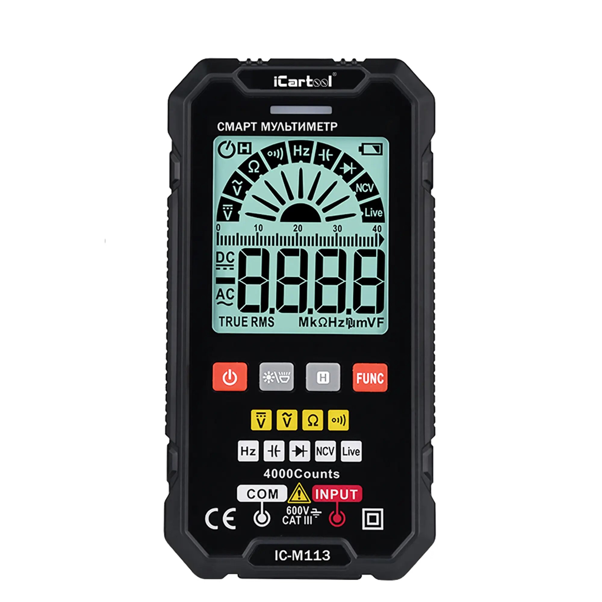 Цифровой смарт мультиметр с подсветкой экрана CATIII 600V, TrueRMS iCartool IC-M113