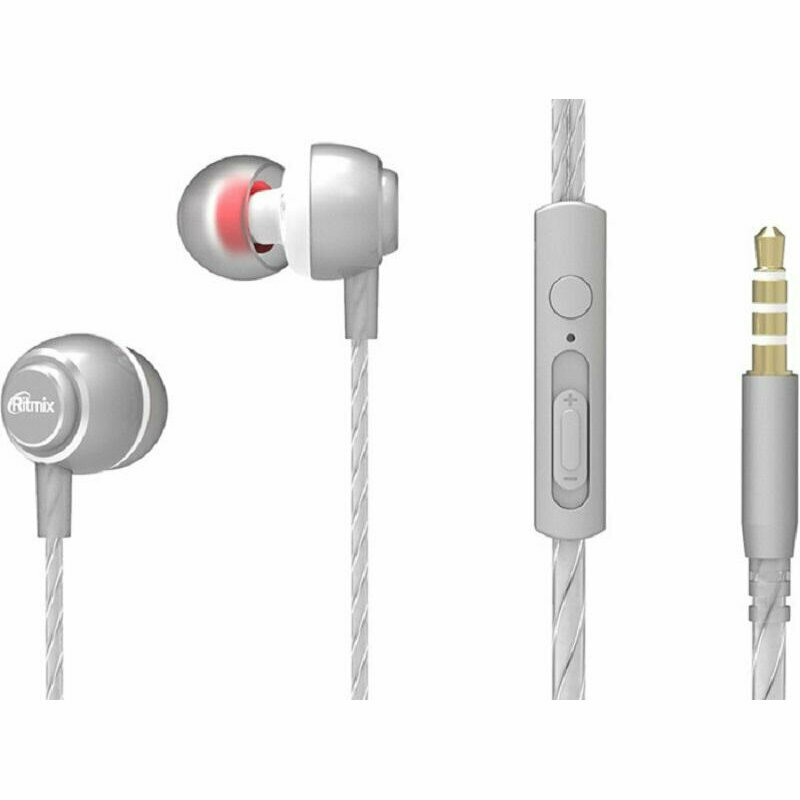 Наушники вкладыши с микрофоном Ritmix RH-150M Silver, мобильная гарнитура, серебристая