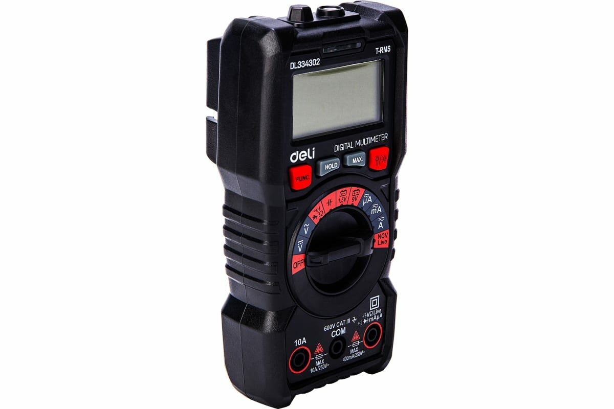 Цифровой мультиметр Deli DL334302 (напряж 0,2-600В,сила тока 0,02-10А, сопр. 0,0002-40 МОм, ЖК дисплей,2х1,5В ААА)