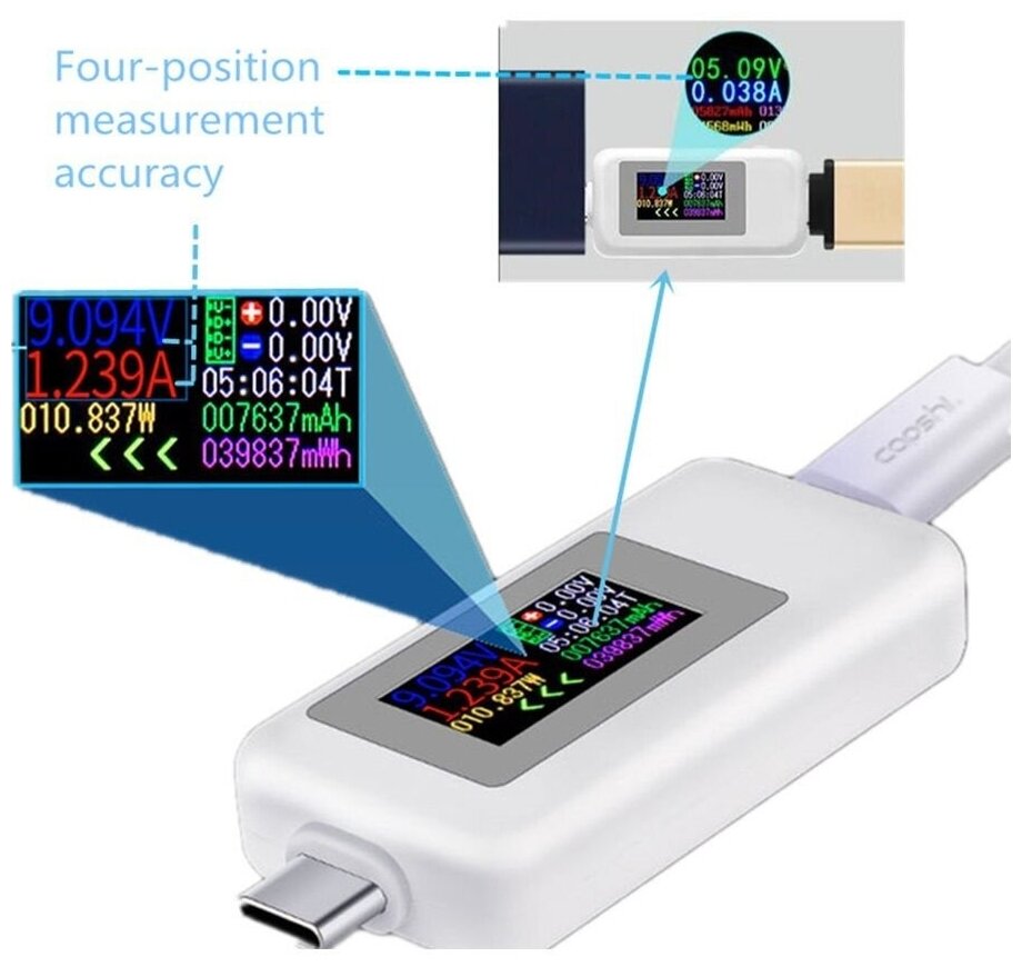 Цифровой тестер TYPE-C USB порта - мультиметр - ЮСБ Доктор - мультитестер KWS-MX1902C белый Keweisi