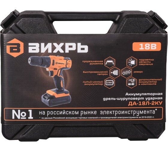 Дрель-шуруповерт ударная аккумуляторная Вихрь ДА-18Л-2КУ, 18 В, 2 x 2 Ач, Li-Ion, ЗУ