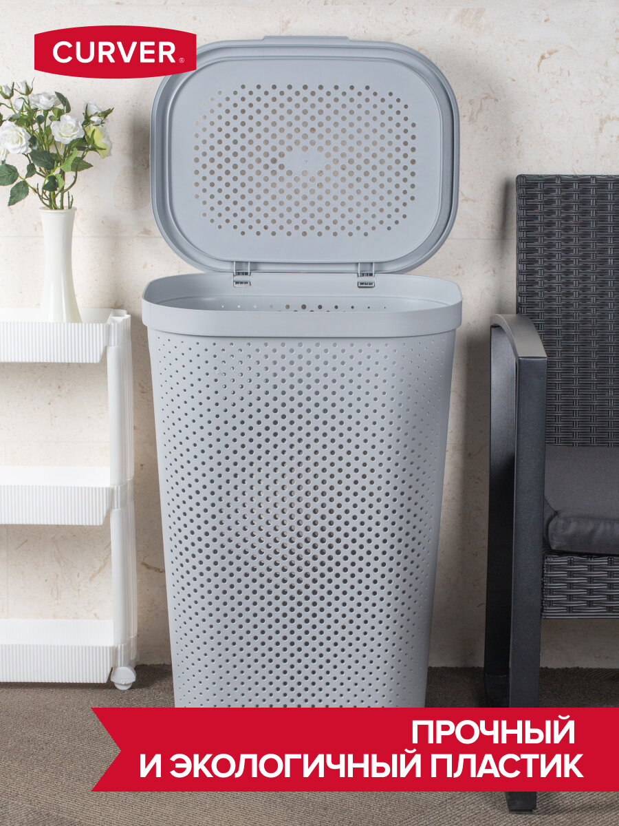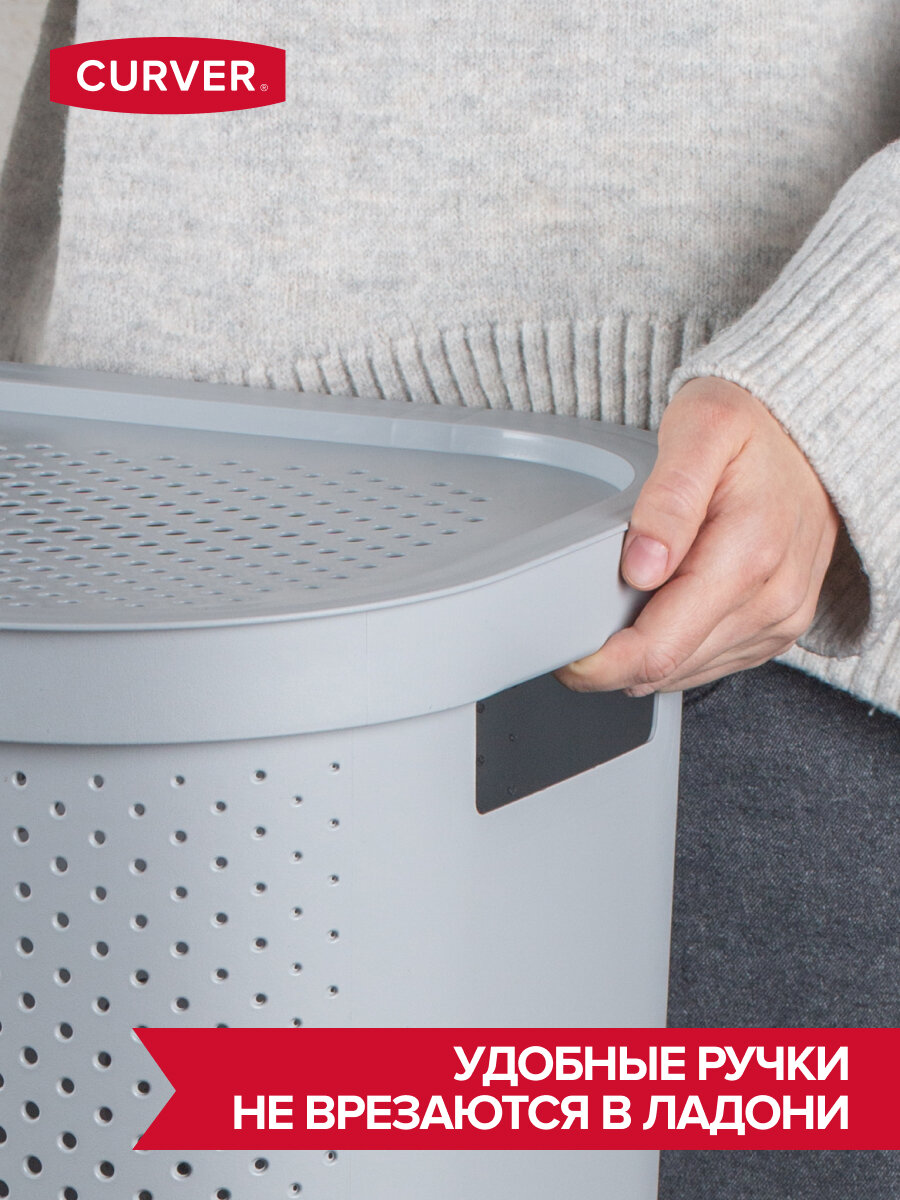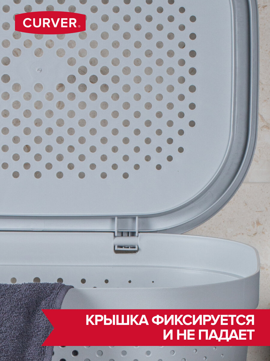 Корзина для белья с откидной крышкой, 60 л, INFINITY CURVER, пластик, цвет темно-серый