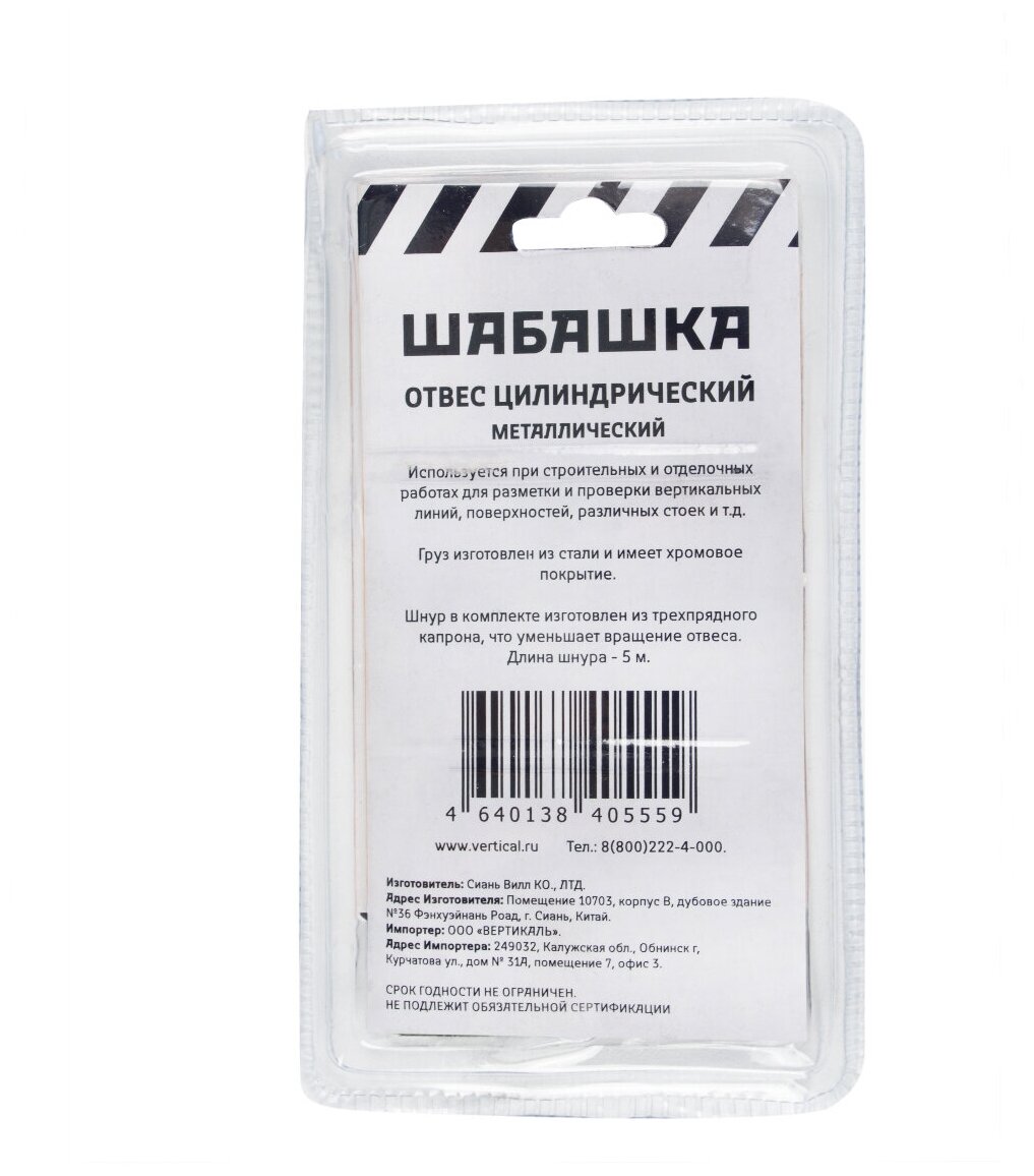 Отвес цилиндрический Шабашка, металл, шнур 5 м, 400 г интересное: