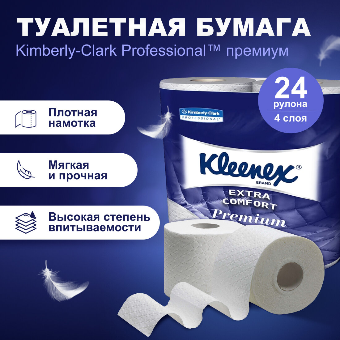 8484 Туалетная бумага в стандартных рулонах Kleenex Premium Extra Comfort четырёхслойная (24 рул х 19,2 м)
