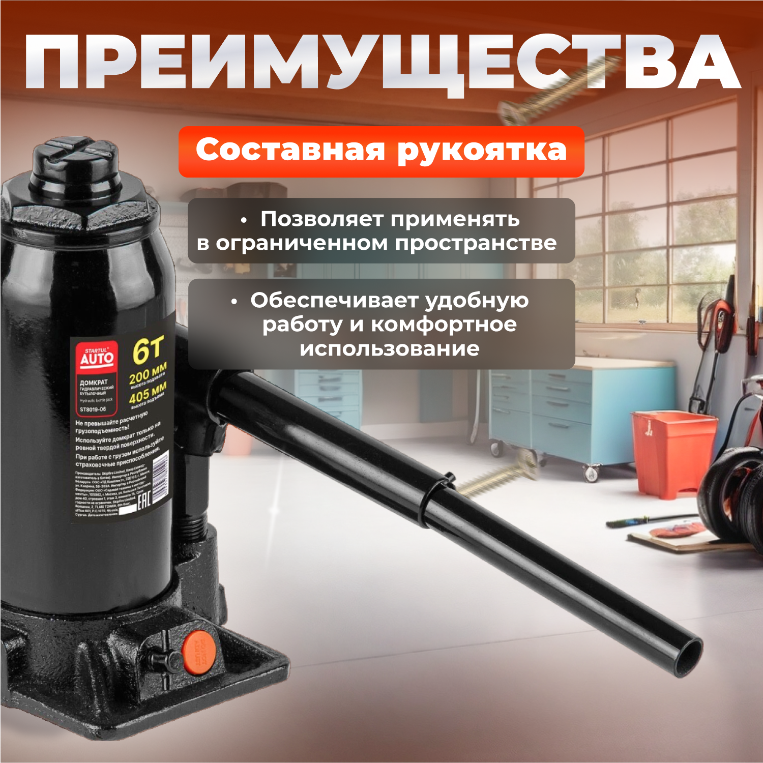 СохранитьДомкрат гидравлический бутылочный 6 т STARTUL Auto (ST8019-06) интересное: