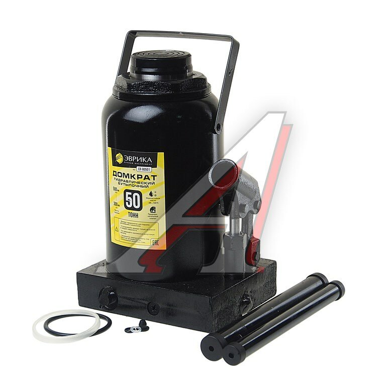 Домкрат гидравлический ER-80501 бутылочный с клапаном 50т, ремкомплект (выс. подъема 300-500мм) ЭВР, эврика ER80501 (1 шт.)