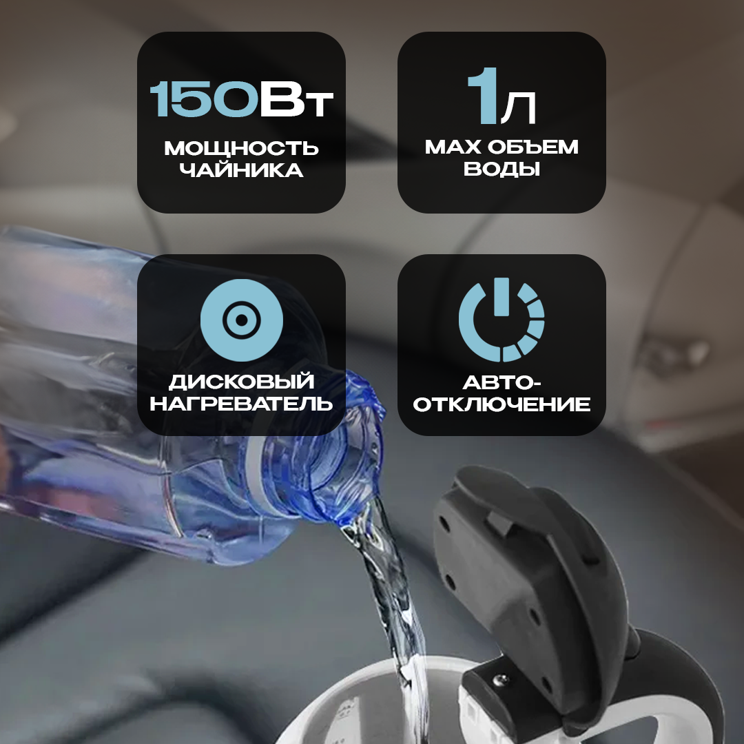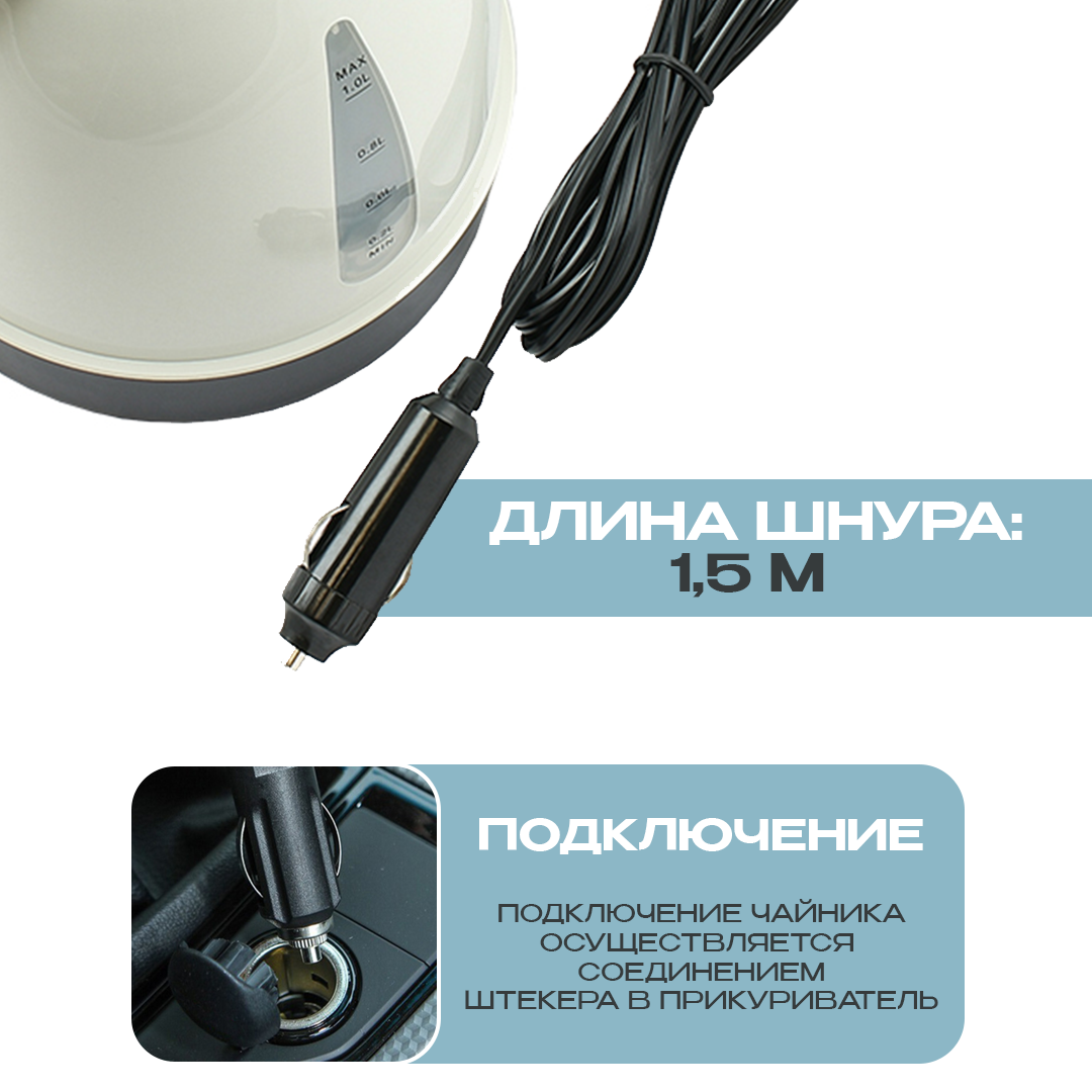 Чайник автомобильный 1.0л, 12V, 150W Чайник от прикуривателя. Чайник в автомобиль. Авточайник от прикуривателя. Дорожный чайник электрический. интересное: