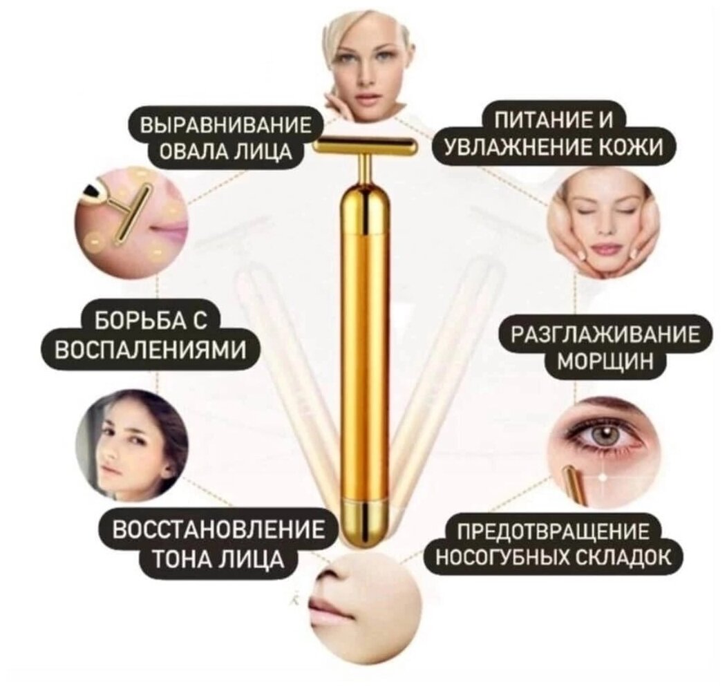 Массажер для лица (вибромассажер) ионный /мезороллер для лица / лифтинг эффект, золотой интересное: