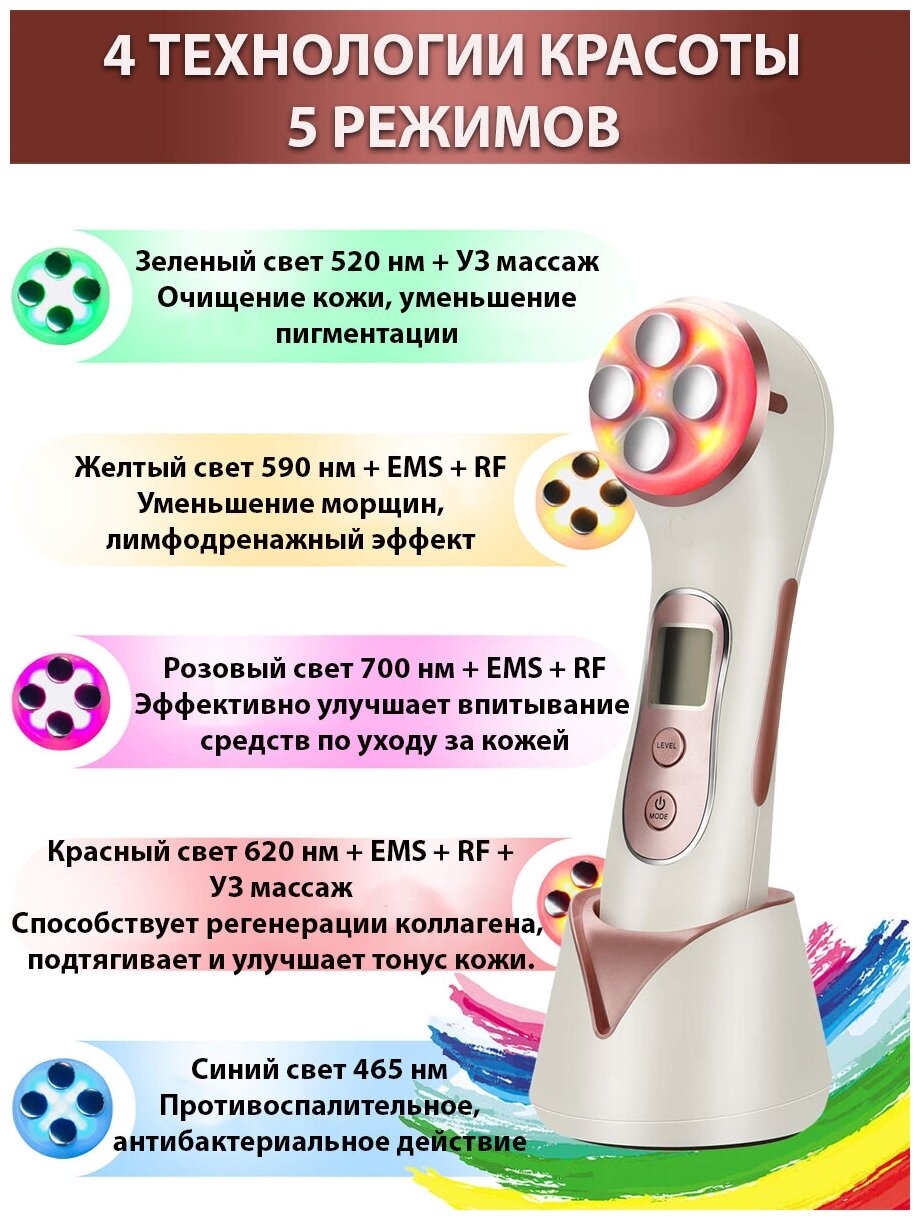 Косметологический аппарат для лица/RF лифтинг/EMS терапия/микротоки/LED терапия/РФ лифтинг/массаж интересное: