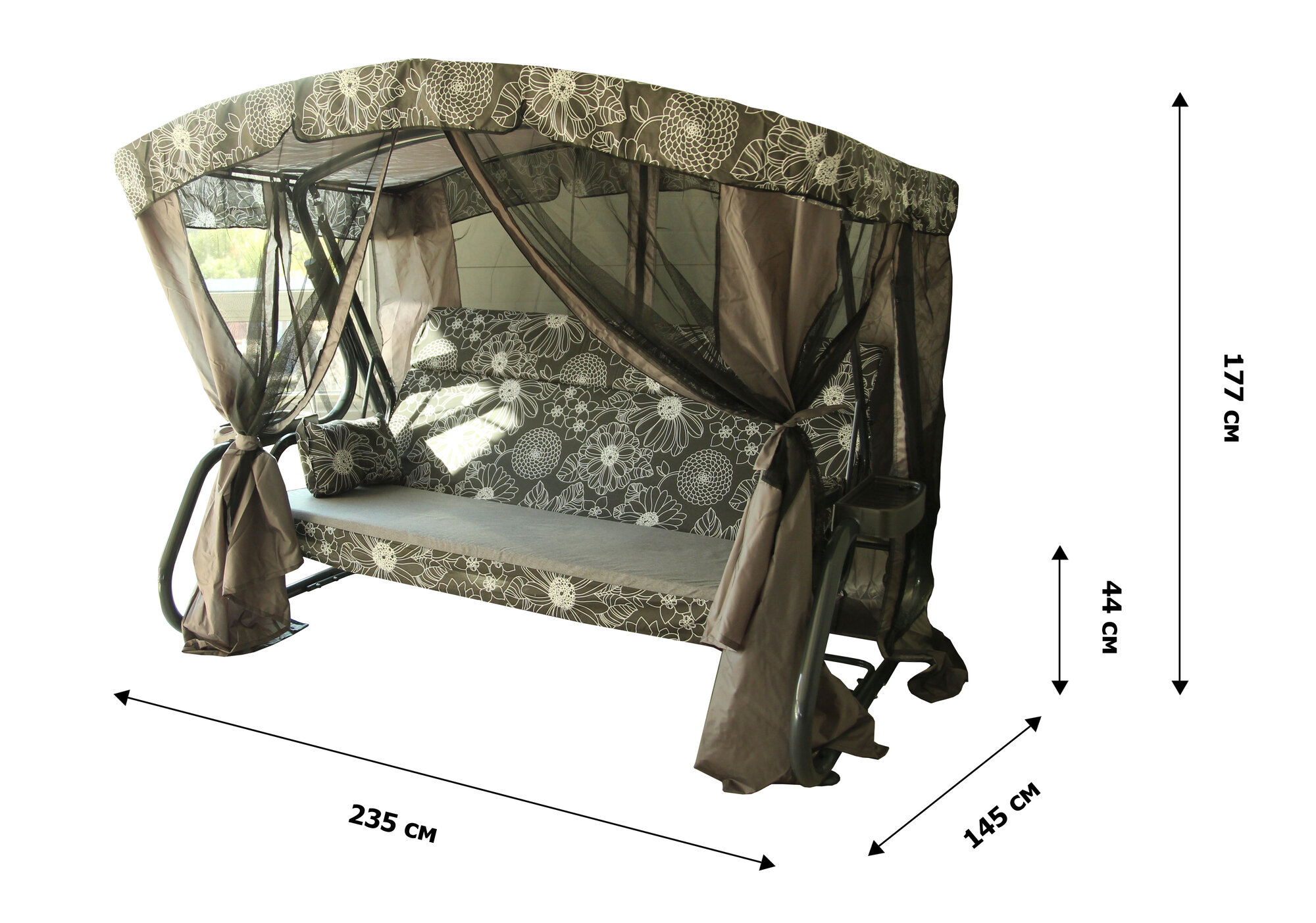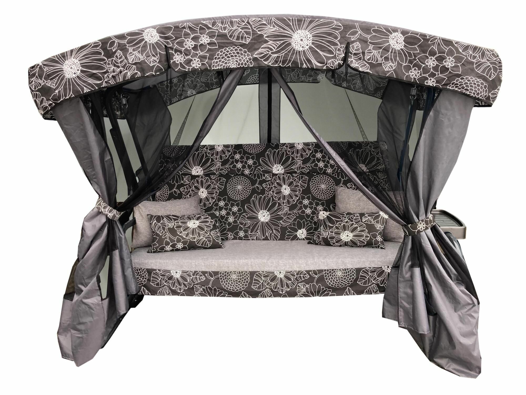 Качели садовые 3-х местные Мебельторг Ранго Премиум Флора Каркас графит/Черный рис.белые цветы интересное:
