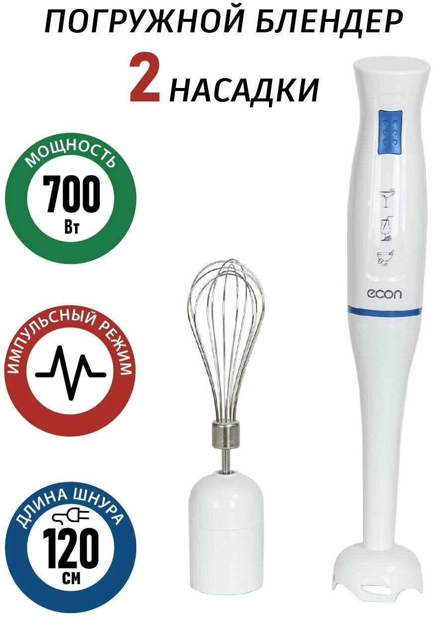 Блендер Econ Eco-201hb, погружной, 700Вт, 1 скорость, 2 шт, цвет белый-синий Econ 9160908 .