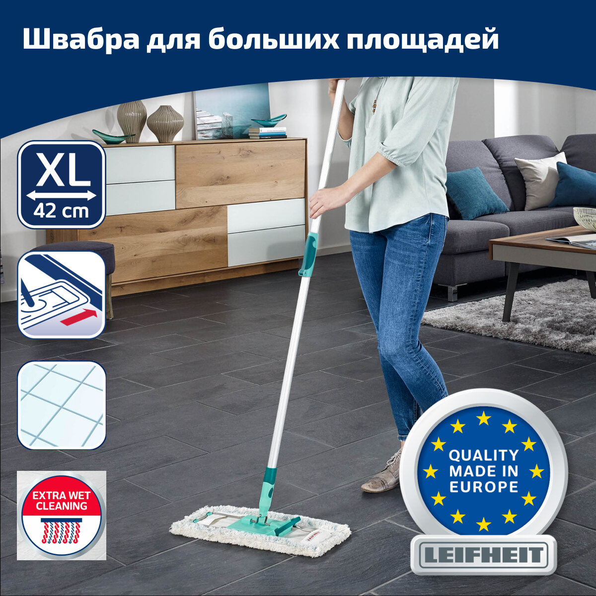 Швабра хозяйственная LEIFHEIT 55020 Wet, рифлёная ручка