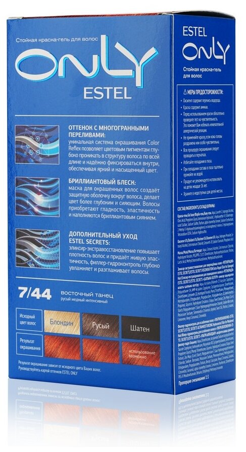 Краска-гель ONLY для окрашивания волос ESTEL 7.44 русый медный интенсивный 50+50+25 мл