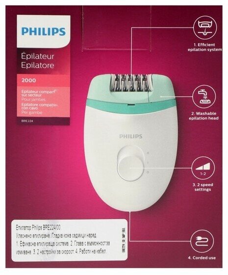 Купить Эпилятор Philips BRE224, BRE225 Satinelle Essential, белый/зеленый