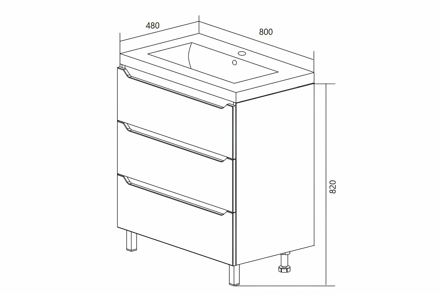 Тумба для ванной Кода 80Н 3в.я. Белый глянец, МДФ