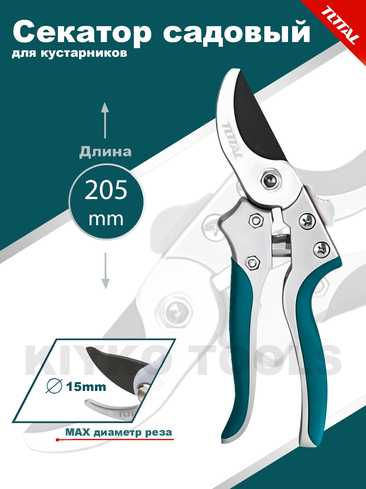 Секатор садовый (тефлоновое покрытие) 8"/205mm TOTAL интересное: